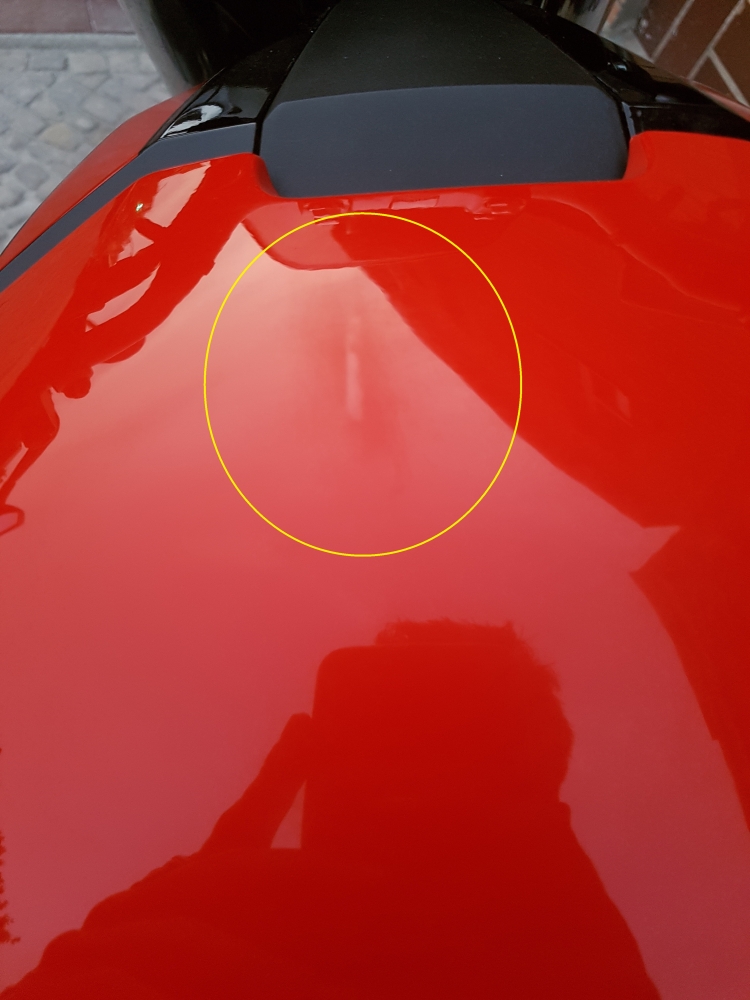 Das Motorrad ist nagelneu. Hab es vor 2 Wochen mit 0 km beim Händler abgeholt. Ich denke also, dass ausgeschlossen werden kann, dass da mal was nachlackiert wurde.